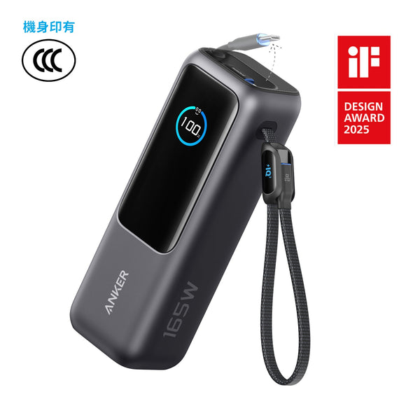 【3C安全認證】Anker 165W 大功率行動電源 A1695|25000mAh 內置伸縮充電線|100W PD 快充【香港行貨,1年原廠保養】