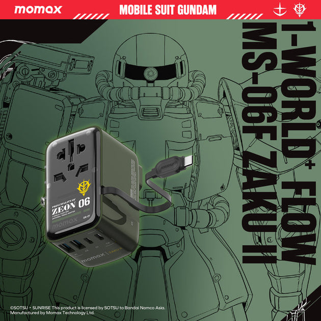 Momax X Gundam 機動戰士高達 1-World+ Flow 35W 渣古II MS-06 連 USB-C 伸縮充電線 (70cm) 旅行插座 UA21UKGDG【香港行貨,1年原廠保養】