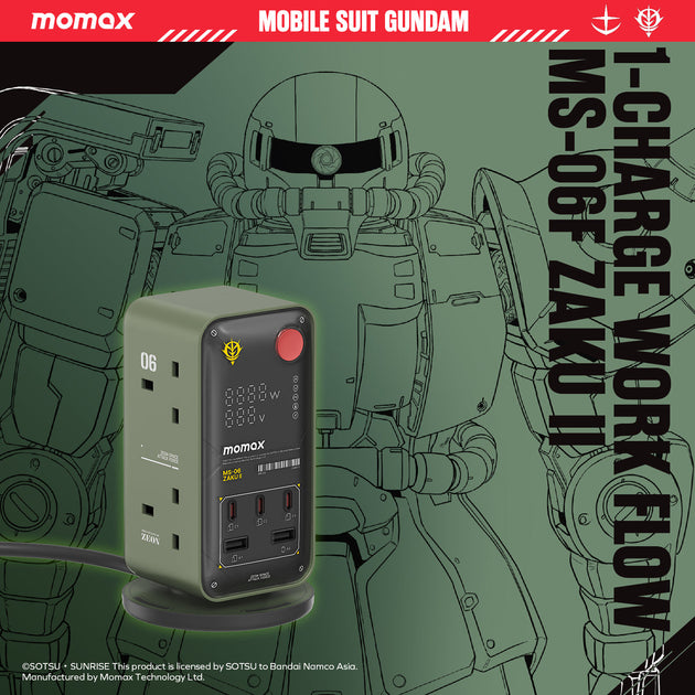 Momax X Gundam 機動戰士高達 1-Charge Work-Flow PD35W 渣古II MS-06 6位插座 (附USB) 數位顯示拖板 US21UKGDG【香港行貨,1年原廠保養】