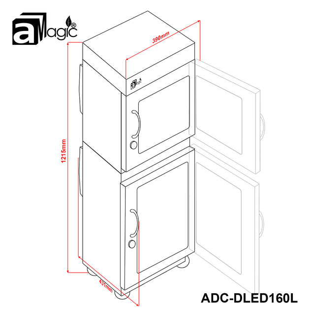 aMagic 160升(L) 雙屏按鍵式電子防潮箱 | 按鍵式微電腦 LED雙屏數控恒濕 存放攝影器材 相機鏡頭 手袋防潮櫃 | 型號 ADC-DLED160L
