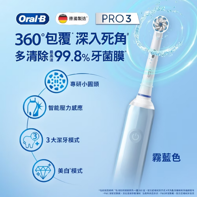 Oral-B Pro 3 充電電動牙刷【香港行貨,2年保養】