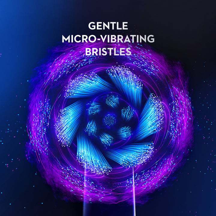 Oral-B iO9 智能系列具備了強勁而柔和的微震技術,並結合了Oral-B以牙醫工具為靈感啟發的圓形刷頭獨特設計,享受專業般的潔淨感受。智慧型壓力感應器可有助於防止刷牙力度過當,保護牙齦和琺瑯質。