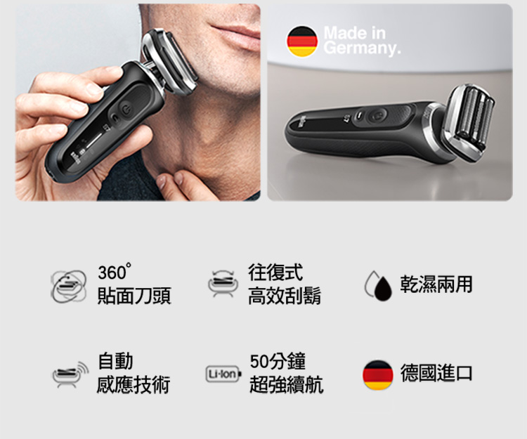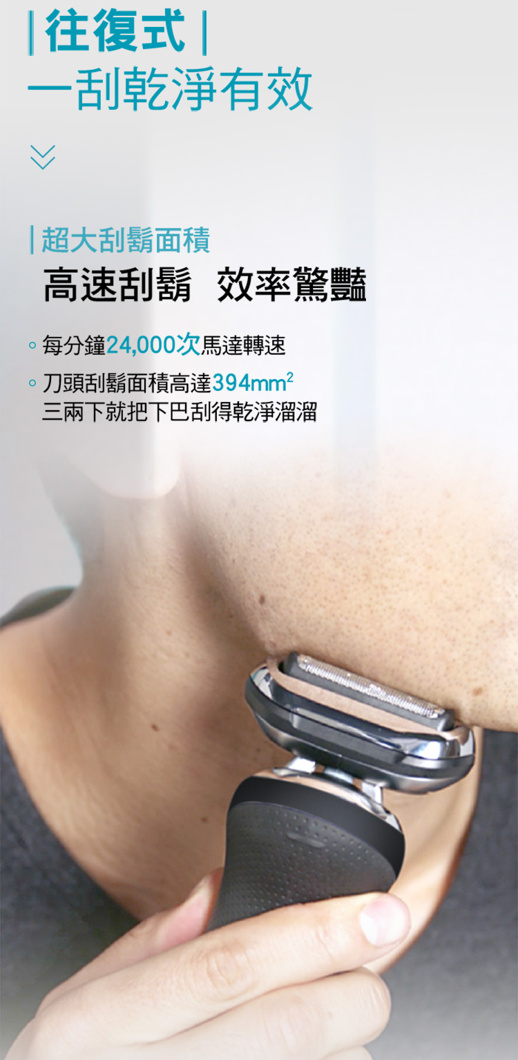 - 超大刮鬍面積-高速刮鬍,效率驚豔