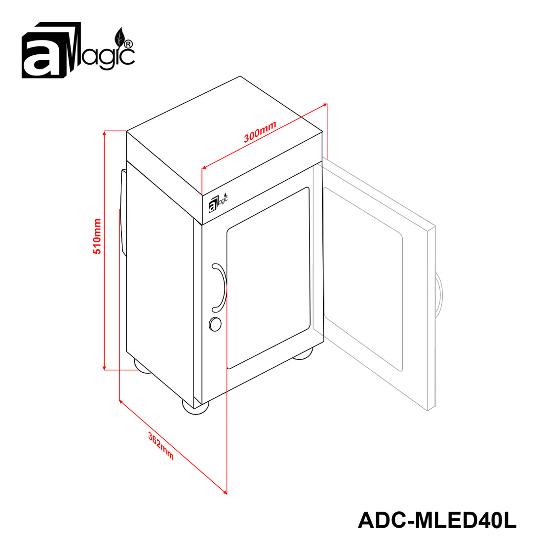 aMagic 40升(L) 單屏旋鈕式電子防潮箱 | LCD單屏顯示 存放攝影器材 相機鏡頭 食材海味防潮櫃 | 型號 ADC-MLED40L
