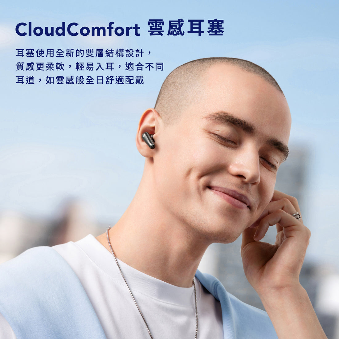 耳塞使用雙層結構設計,質感更柔軟,輕易入耳及穩固,適合不同耳道,如雲感般全日舒適配戴。