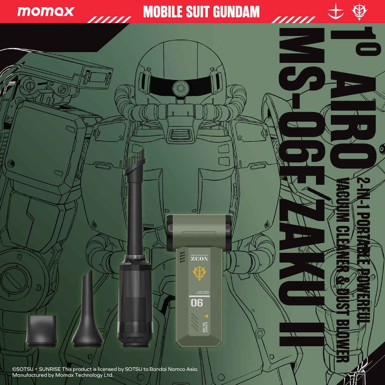 Momax X Gundam 機動戰士高達 1° Airo 2合1 渣古II MS-06 渦輪高速風扇和清潔套裝 RO12GDG【香港行貨,1年原廠保養】